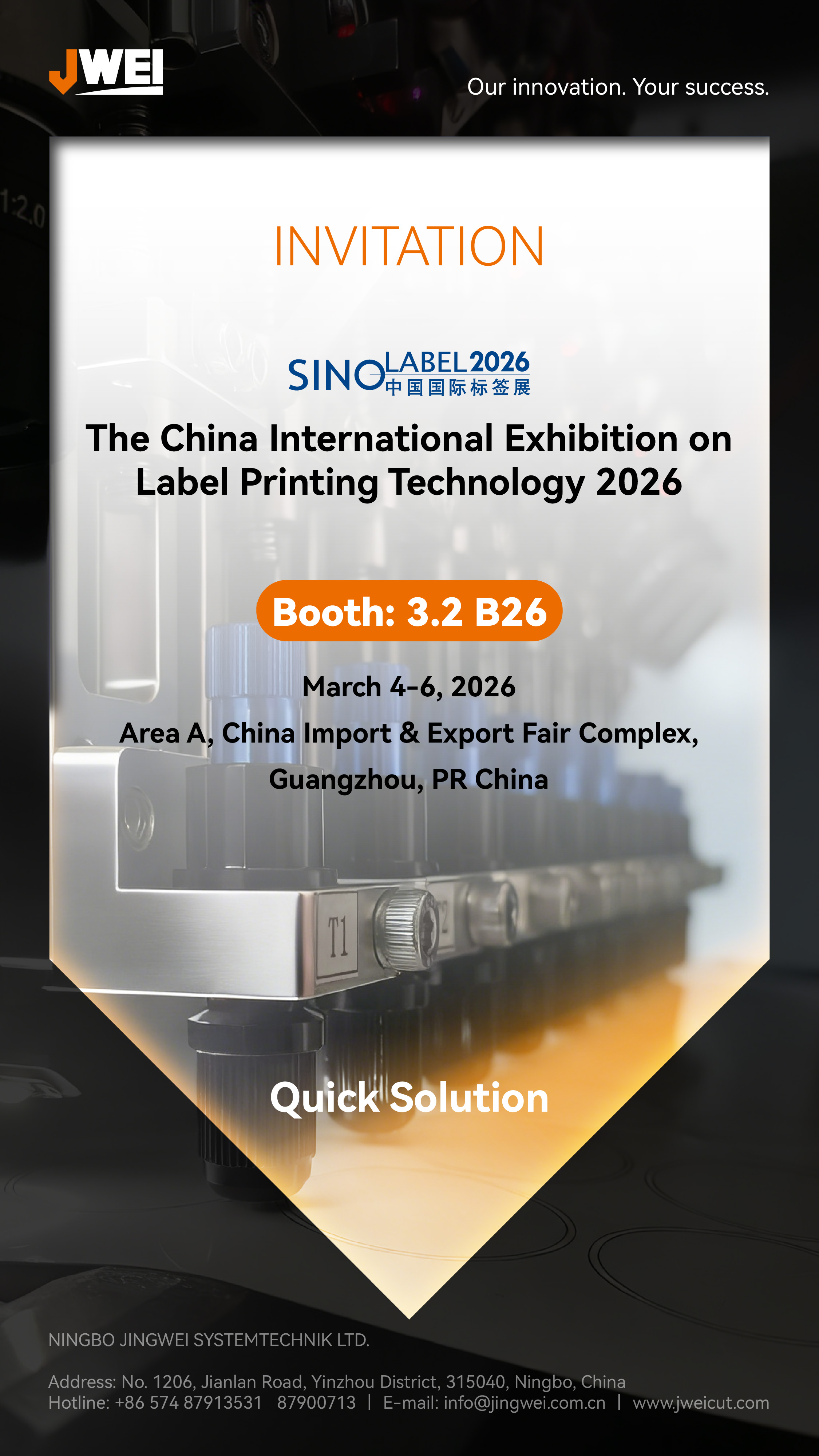 Join us on March 4 as we launch the year in grand style with two major exhibitions happening simultaneously: APPPEXPO 2026 in Shanghai and Sino-Label 2026 in Guangzhou. Wherever you are, seize the opportunity to experience JWEI's latest innovations and intelligent cutting solutions up close.